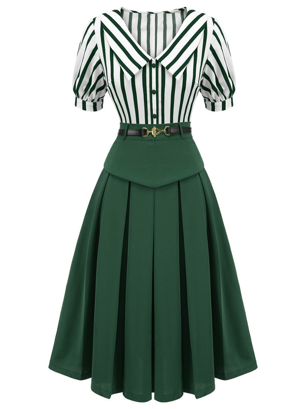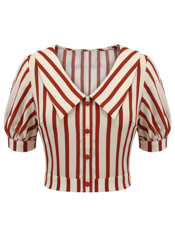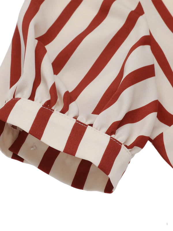 2PCS Orange Rot 1950er Gestreifte Bluse & Faltenrock