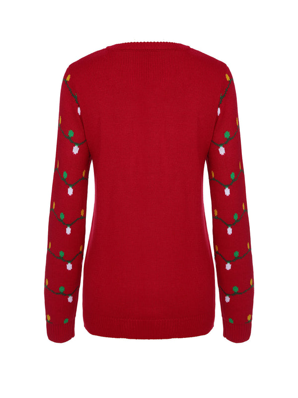 Roter 1940er Jahre Weihnachtsdruck Strickpullover