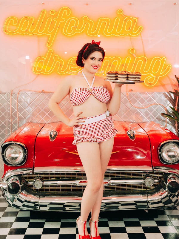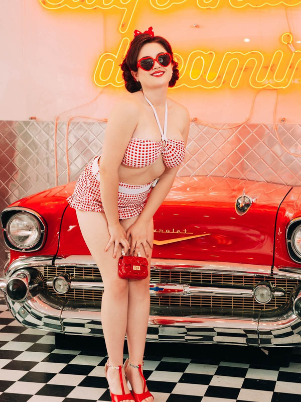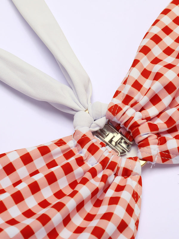 RETRO ROTES KARIERTES HALFTER BIKINI-SET