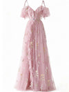 Rosa 1970er Slip Blumen Besticktes Netz Schlitz Kleid