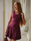 2PCS Weinrot 1960er Nadelstreifen Top & Plissiertes Rock