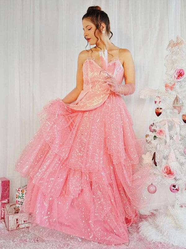 Rosa 1950er Glinda Wicked Glitter Netz Swing Kleid