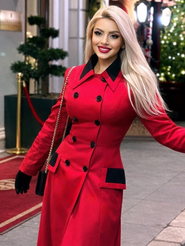 Rot 1950er Revers Zweireihig Mantel