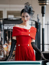 Rot 1950er Samt Schulterfrei Taste Jumpsuit