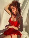 Rot 1960er Herz Netz Blumen Rand Nachthemd
