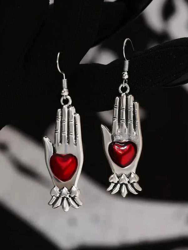 Rot & Silber Vintage Gothic Herz Handschuh Ohrringe