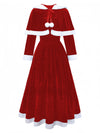 Rot 1930er Frau Weihnachtsmann Samt Kleid mit Kap