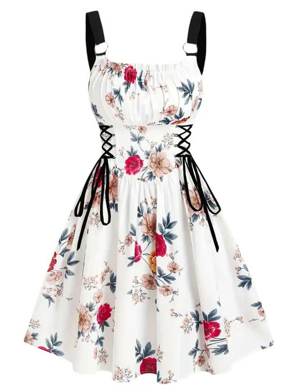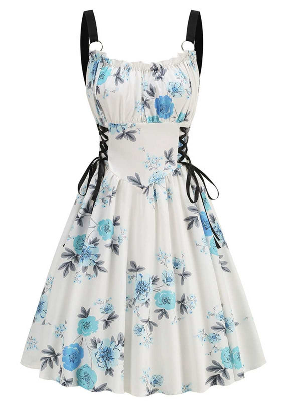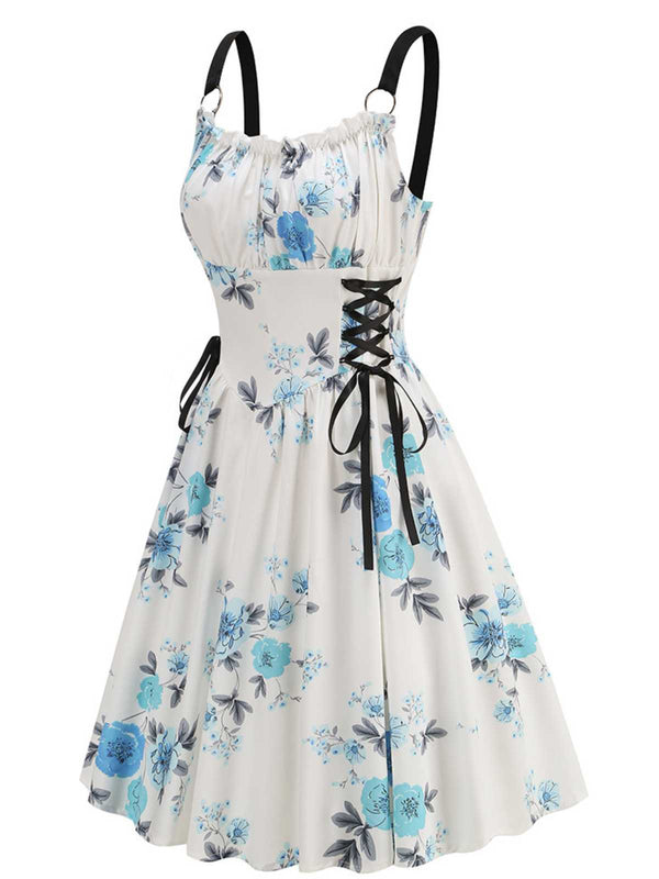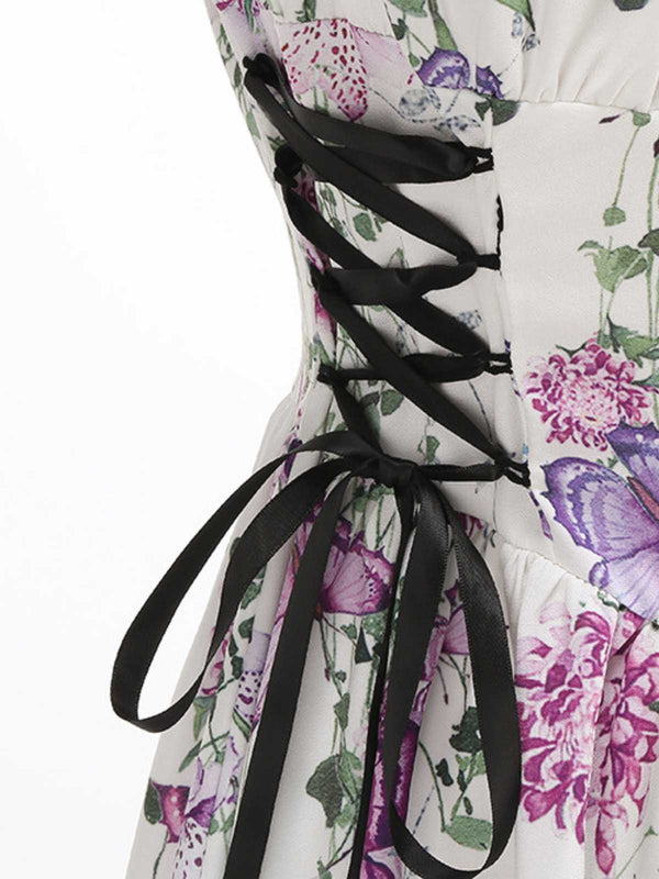 [Vorverkauf] 1950er Träger Blumen Schmetterlinge Schnürung Korsett Kleid