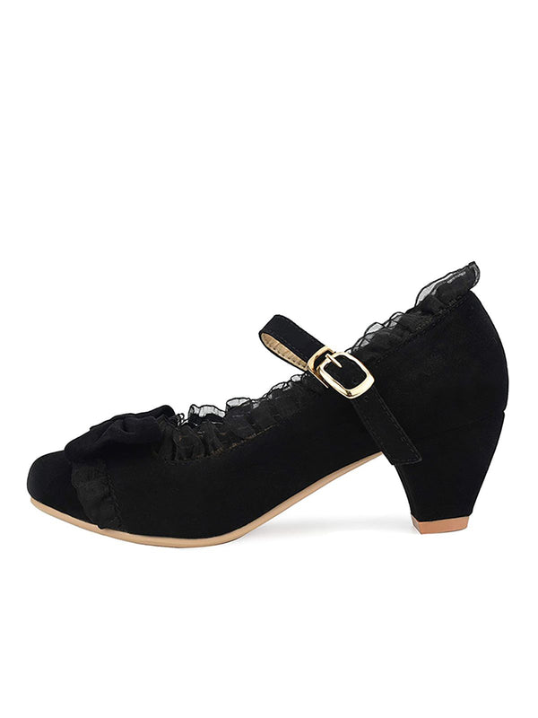 VINTAGE SPITZE BOW HOHE ABSATZ SCHUHE