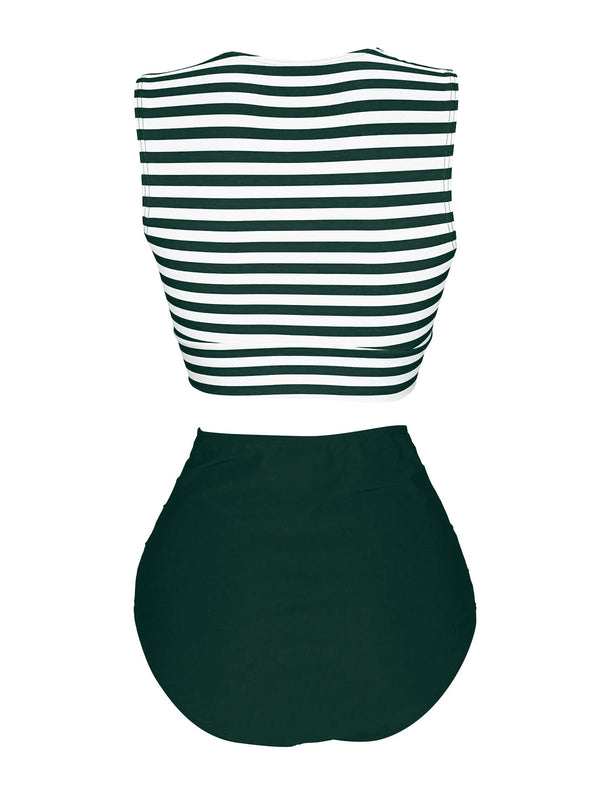 Rosa & Schwarz 1970er Streifen Taille Binden Patchwork Badeanzug