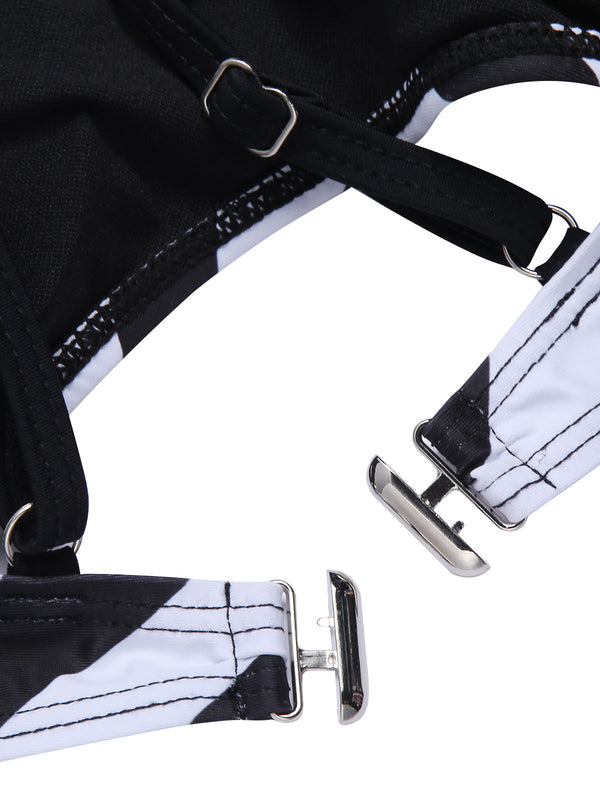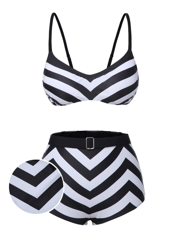 Schwarz 1950er Gestreiftes Spaghetti Träger Badeanzug