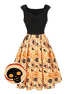 Schwarz & Gelb 1950er Kürbis Fledermaus Spinne Kleid