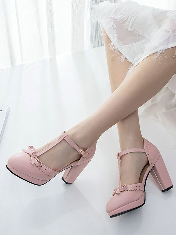 Hellblau Retro Bogen T-Gurt Hoher Absatz Schuhe