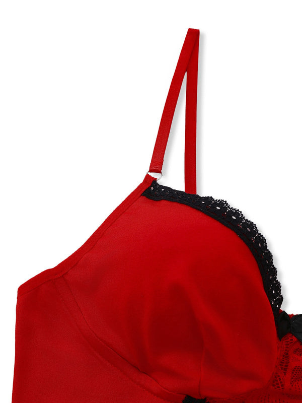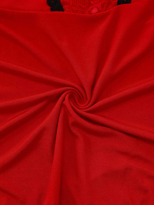 Rot 1940er Spaghetti Träger Spitze Besatz Nachthemd