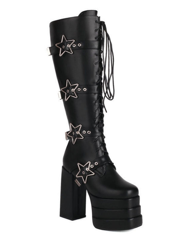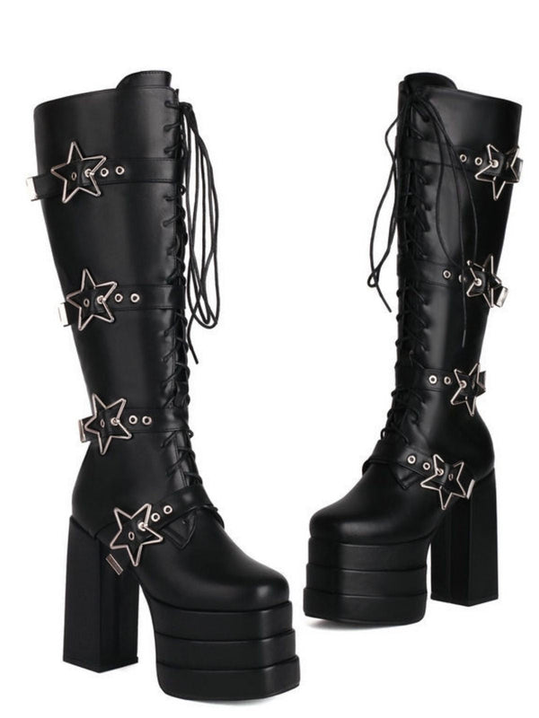 Schwarz Stern Taste Gothic Platform High Heels Stiefel