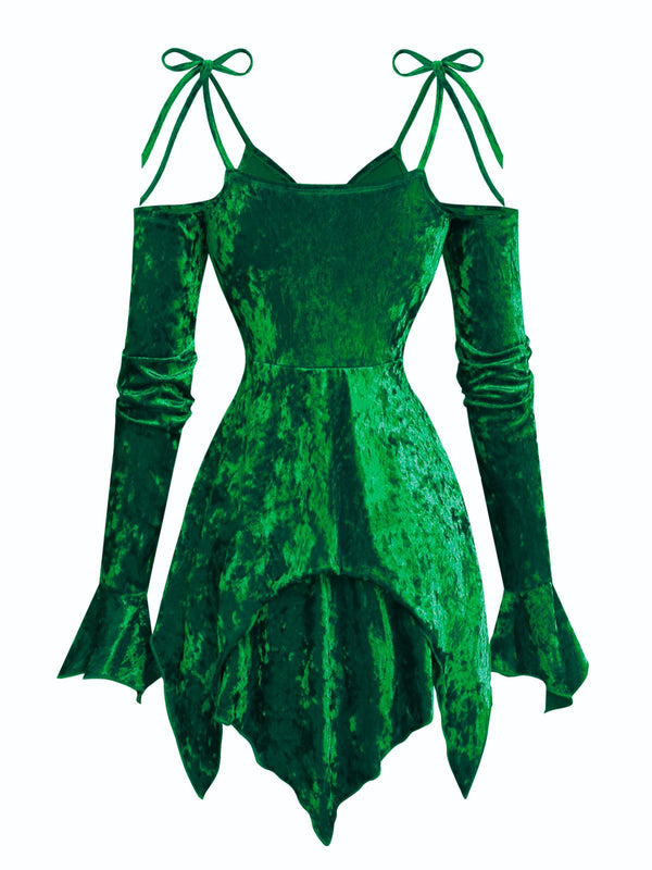 1960er Samt Fledermausärmel Irregulär Saum Kleid