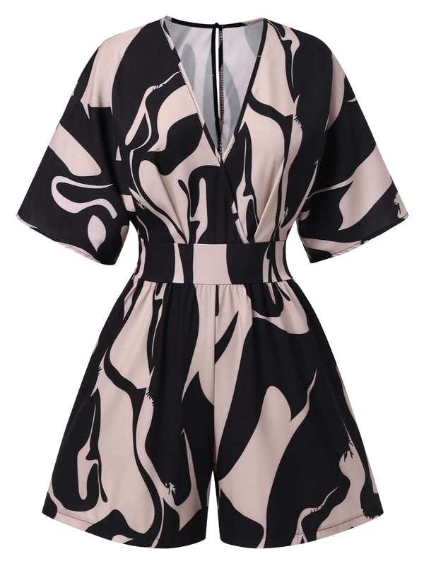 Mehrfarbig 1940er V-Ausschnitt Gedruckt Fledermausflügel Romper