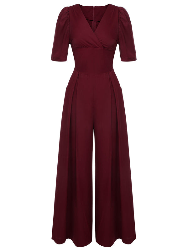 1930er Puff Kurzarm Weites Bein Jumpsuit