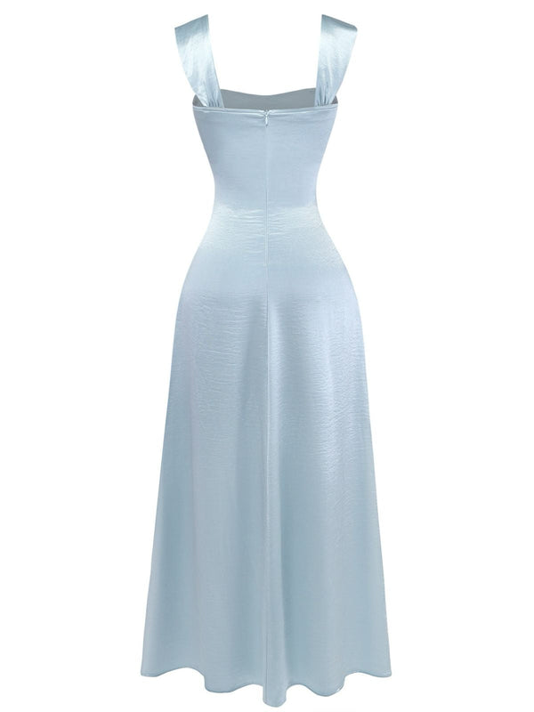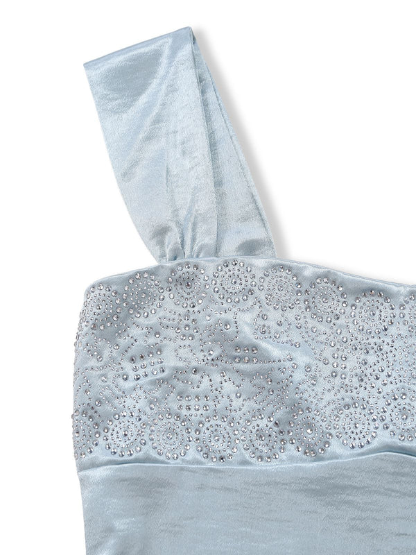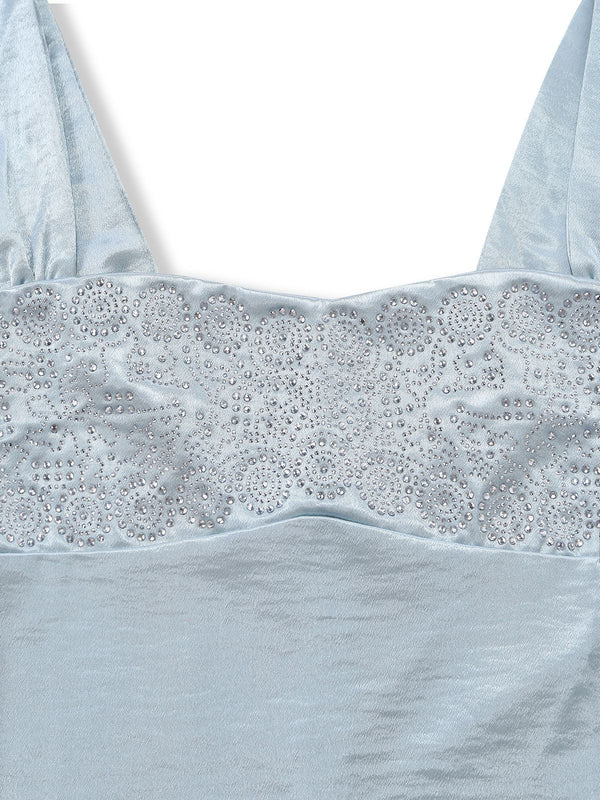 1930er Satin Strassstein Breite Träger Maxi Kleid