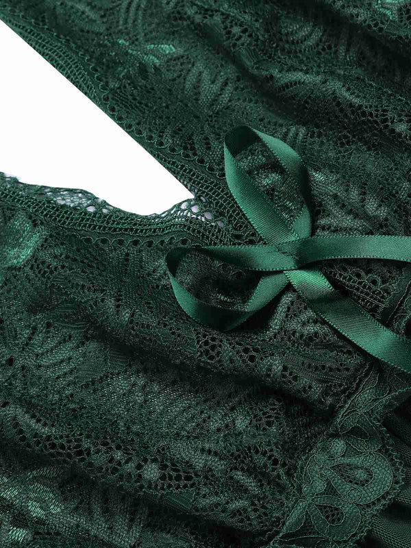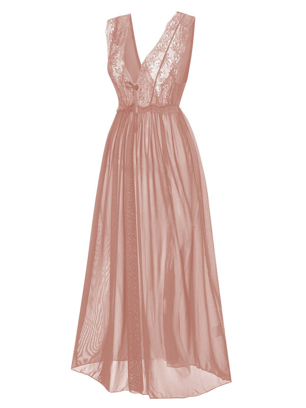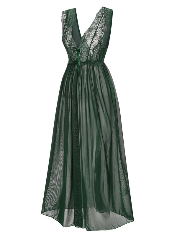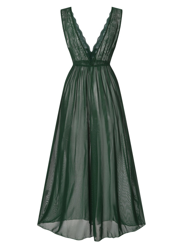1930er Tiefer V-Ausschnitt Spitzennetz Nachthemd