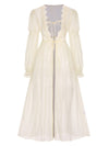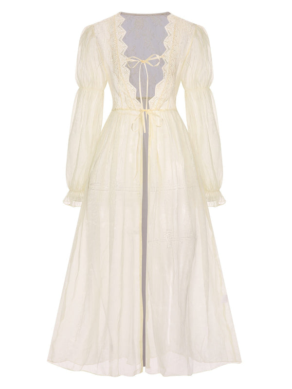 Aprikose 1950er Spitzenbesatz Laternenärmel Robe