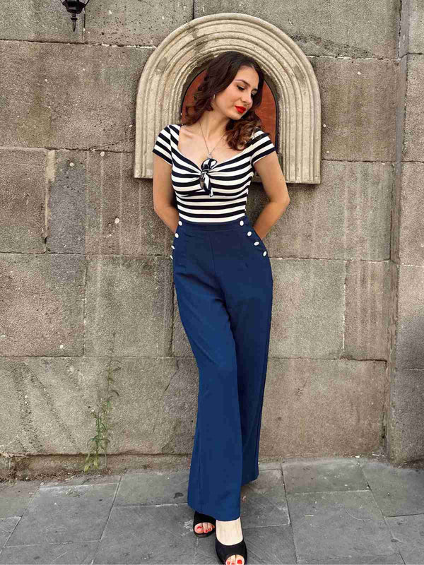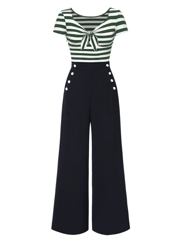 Blau 1950er Hohl Bogen Streifen Patchwork Jumpsuit