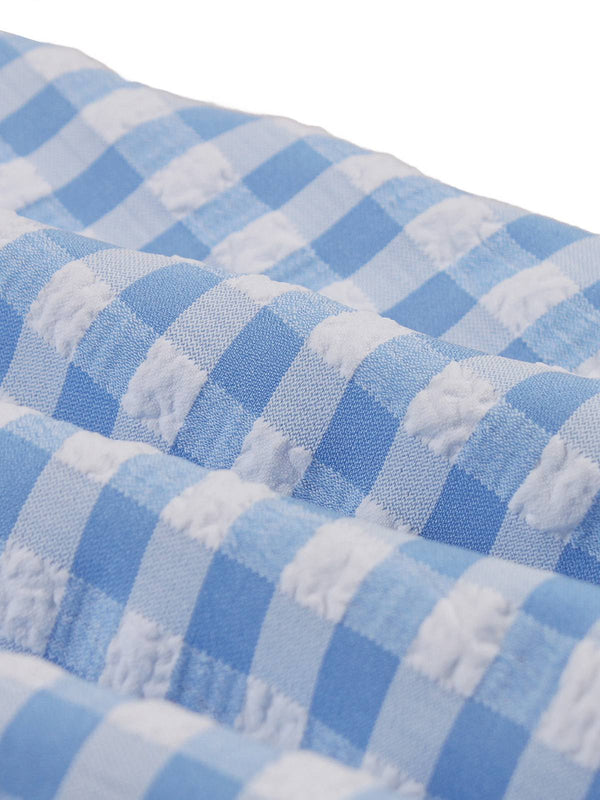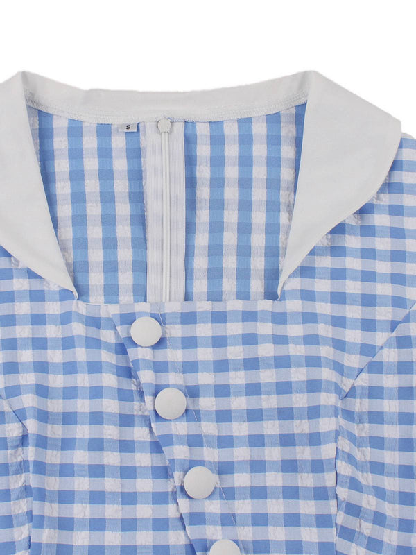 Blau 1950er Vichy-Karo Rüschen Schwing Kleid
