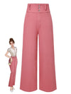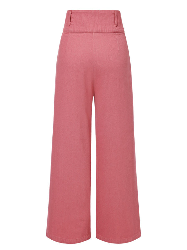 Rosa 1950er Baumwolle Rose Tasten Hosen