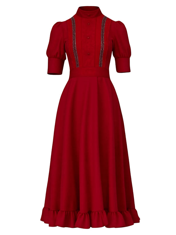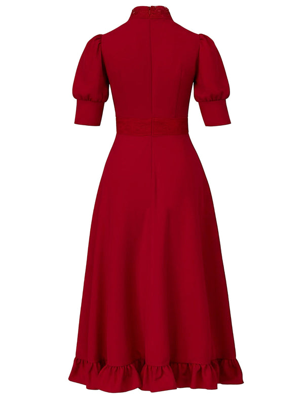 Rot 1940er X-Prequel Perle Spitze Rüschensaum Kleid