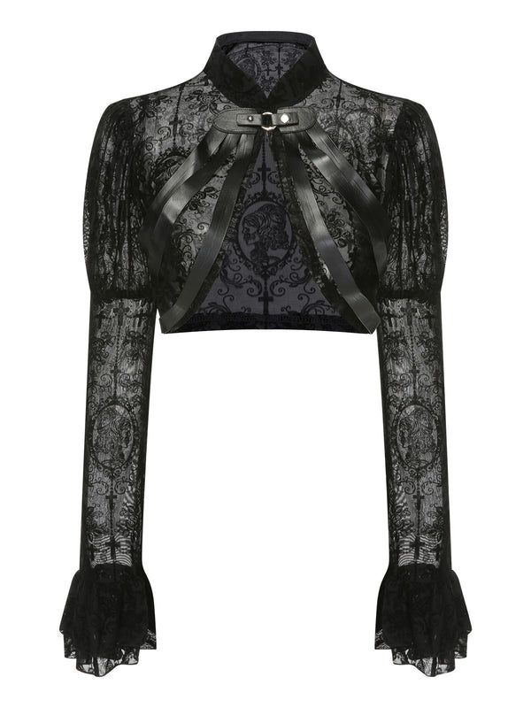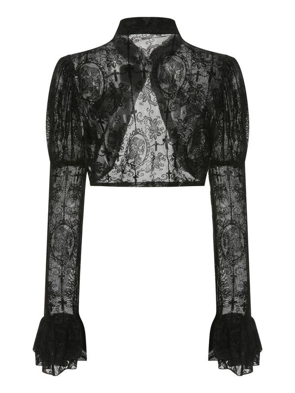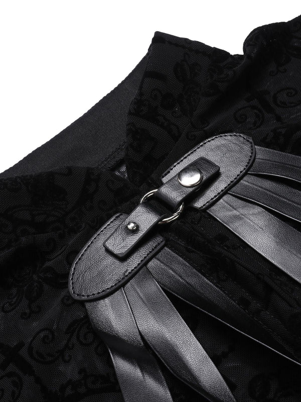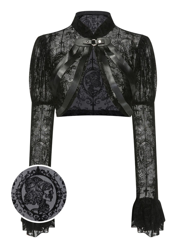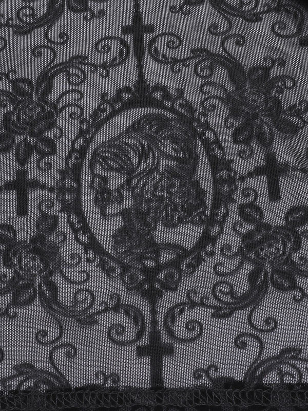 Schwarz 1960er Halloween Spitze Gotisch Knopf Top