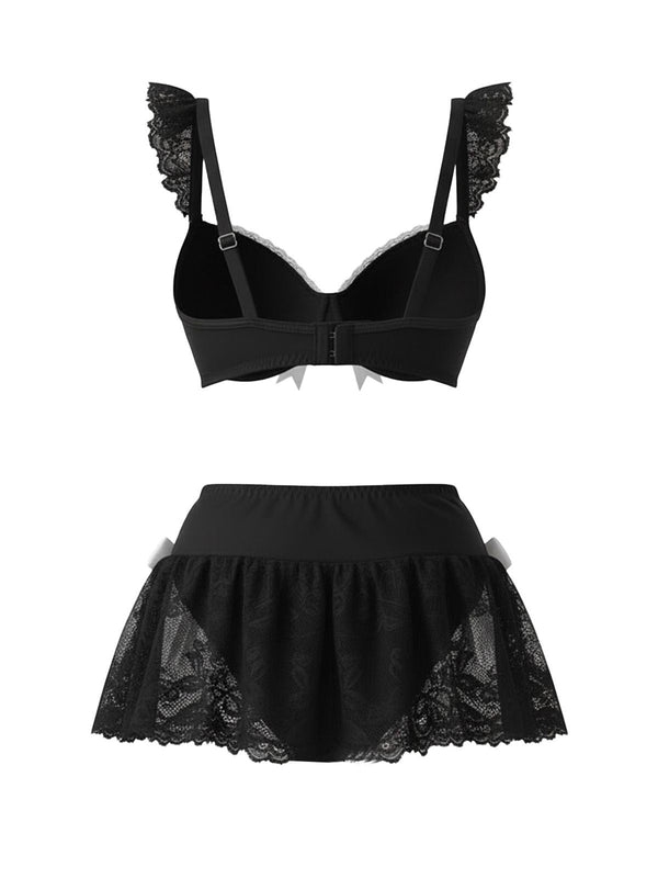 [Vorverkauf] Schwarz 1980er Spitze Bogen Maid Kostüm Loungewear Set