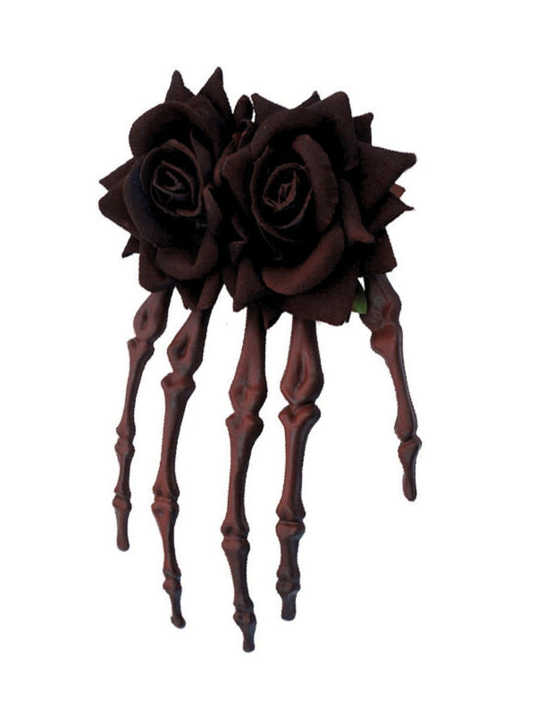 Tiefrot Vintage Rose Skeleton Hand Haarnadel
